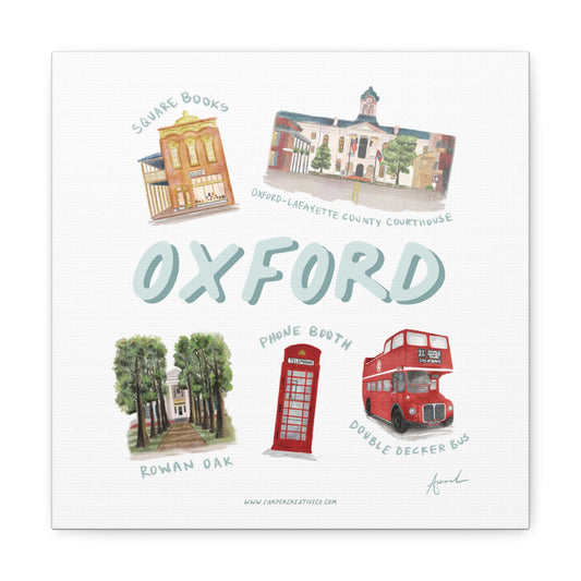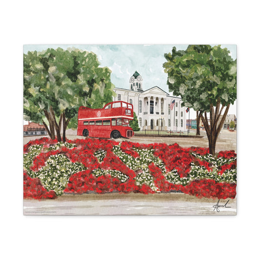 Courthouse Square Double Decker Bus Oxford MS Watercolor Art Canvas