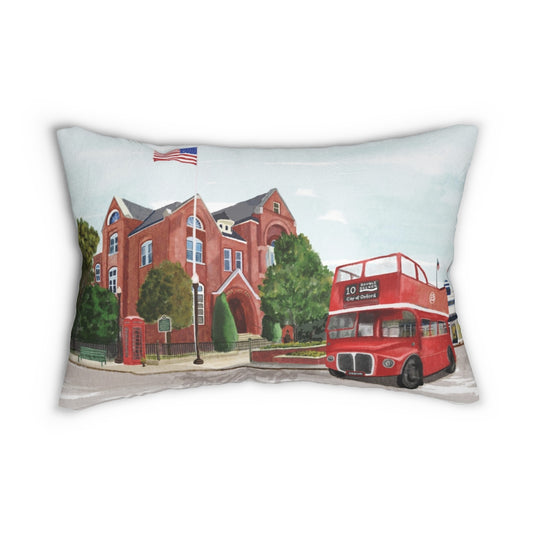 City Hall Double Decker Bus Oxford MS Watercolor Art Pillow