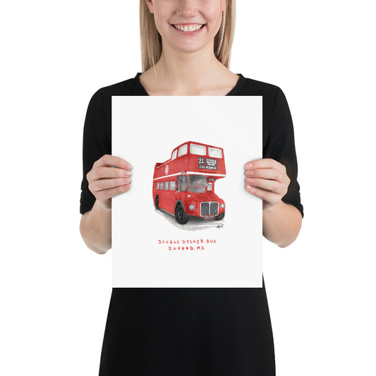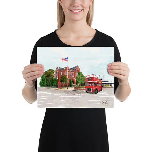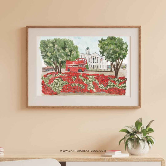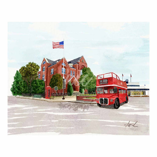 City Hall Double Decker Bus Oxford MS Watercolor Art Print