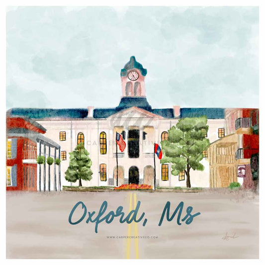 Oxford-Lafayette County Courthouse Watercolor Art Canvas
