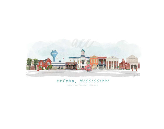Courthouse Square Double Decker Bus Oxford MS Watercolor Art Print
