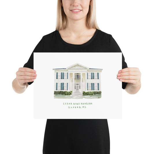 Cedar Oaks Mansion Oxford MS Watercolor Art Print