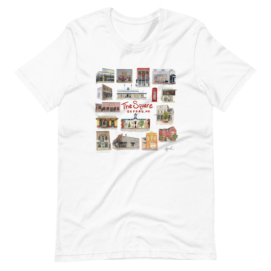 The Square Collage Oxford MS Watercolor Art T-Shirt - Bella + Canvas