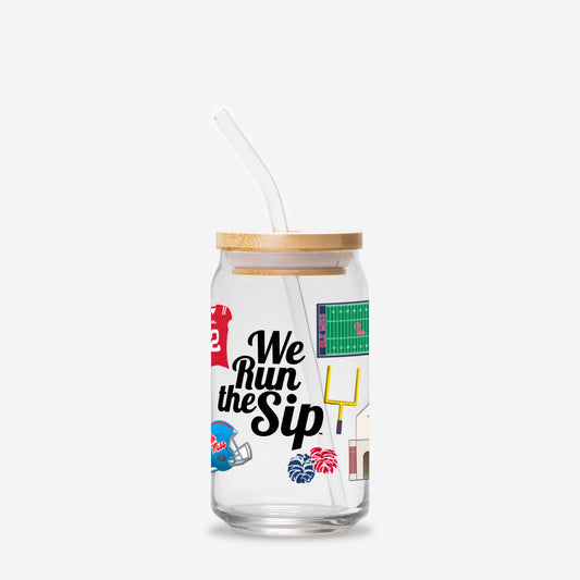 Ole Miss Football Glass Cup with Lid and Straw