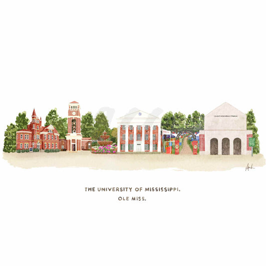Ole Miss Watercolor Skyline Landmark Art Canvas Gallery Wrap
