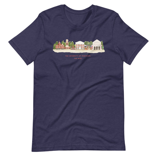 Ole Miss Watercolor Skyline Art T-shirt - Bella + Canvas