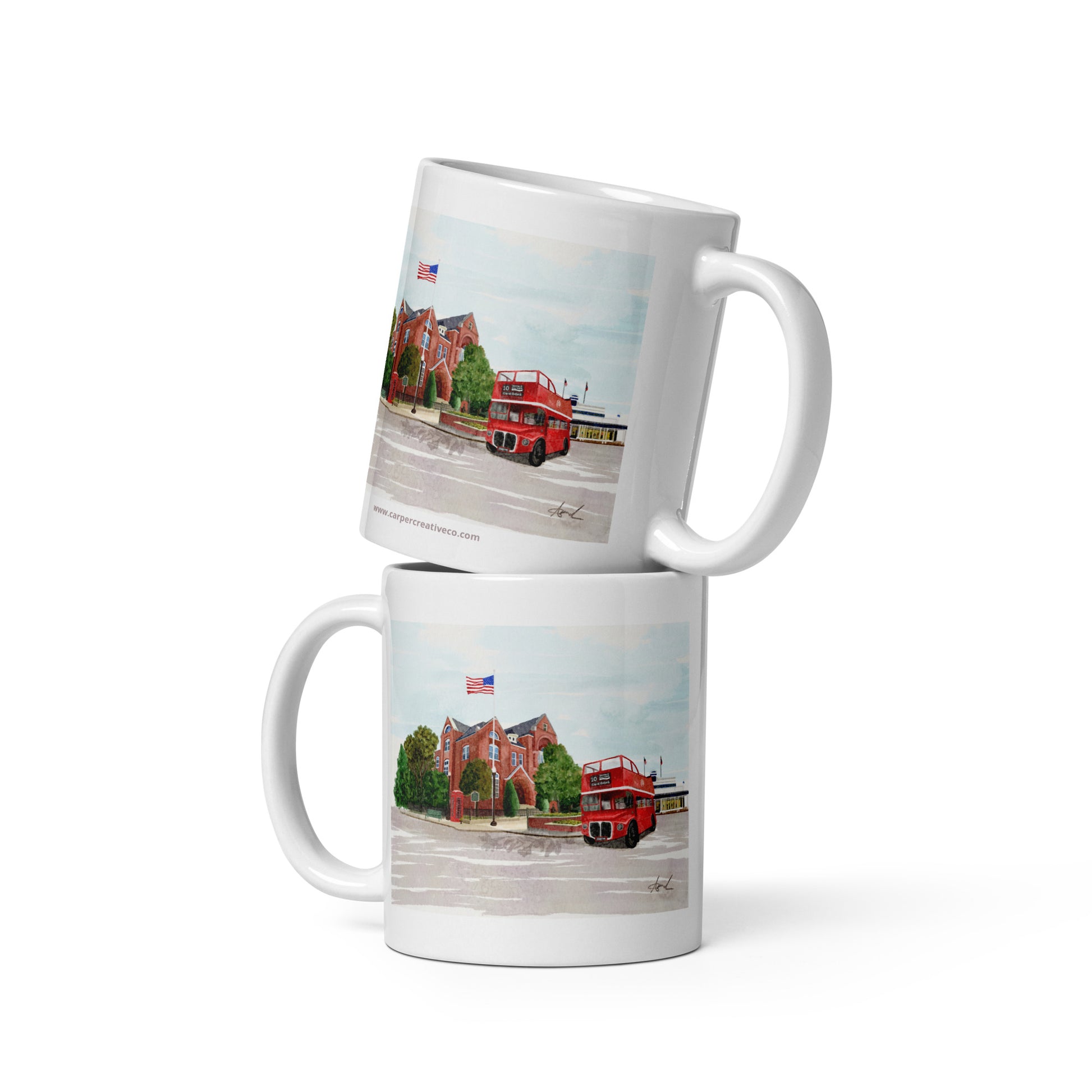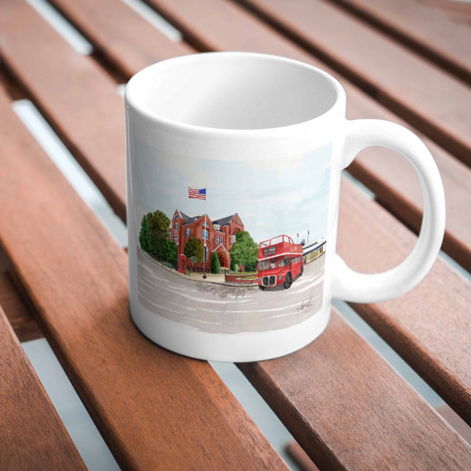 City Hall Double Decker Bus Oxford MS Watercolor Art Mug