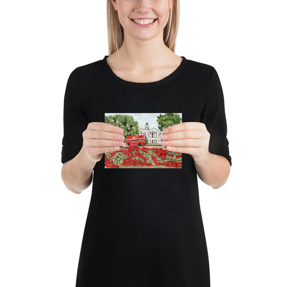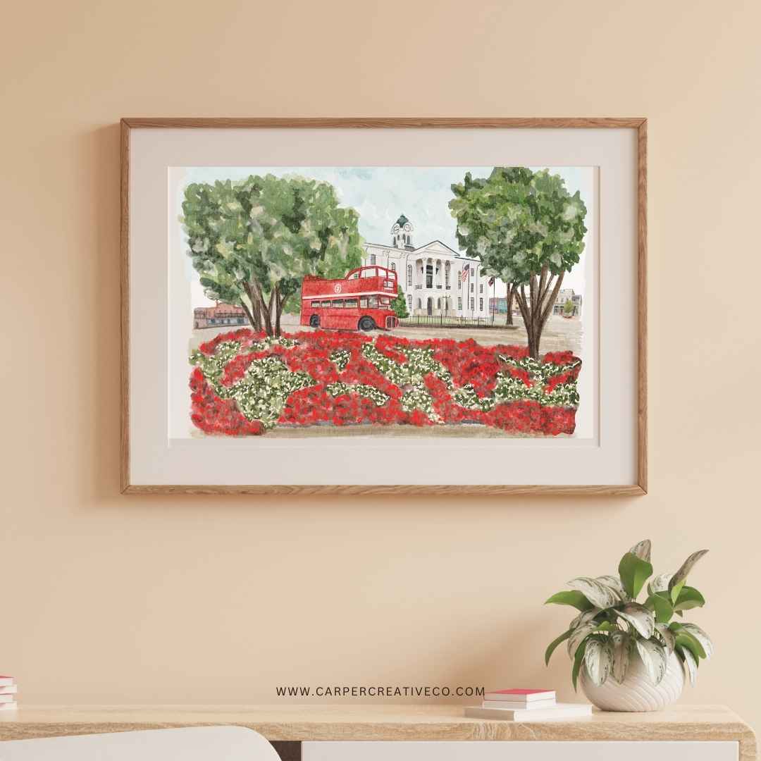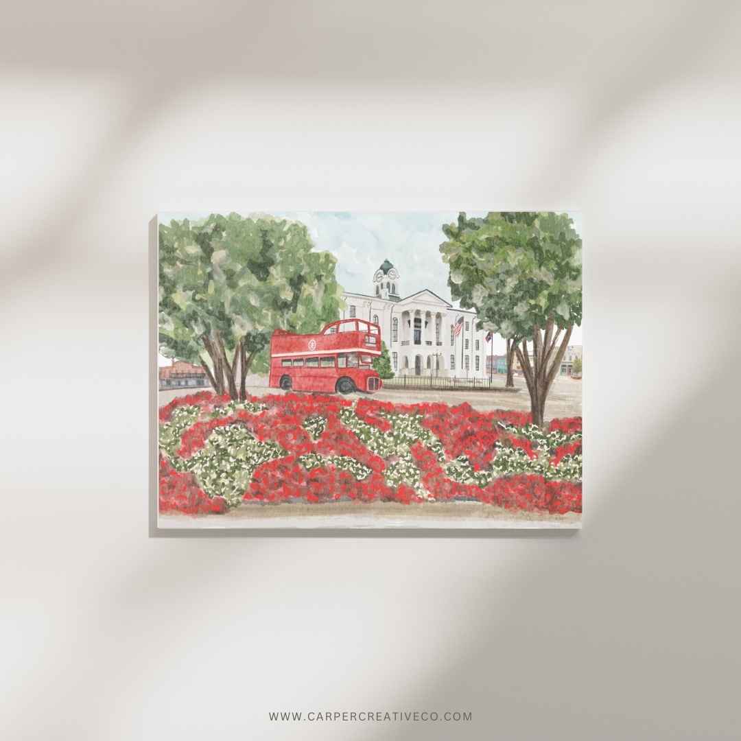 Courthouse Square Double Decker Bus Oxford MS Watercolor Art Print