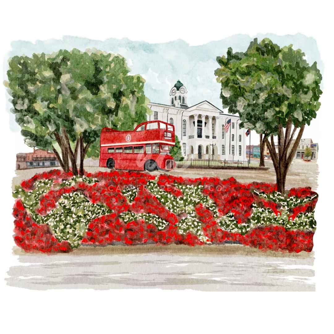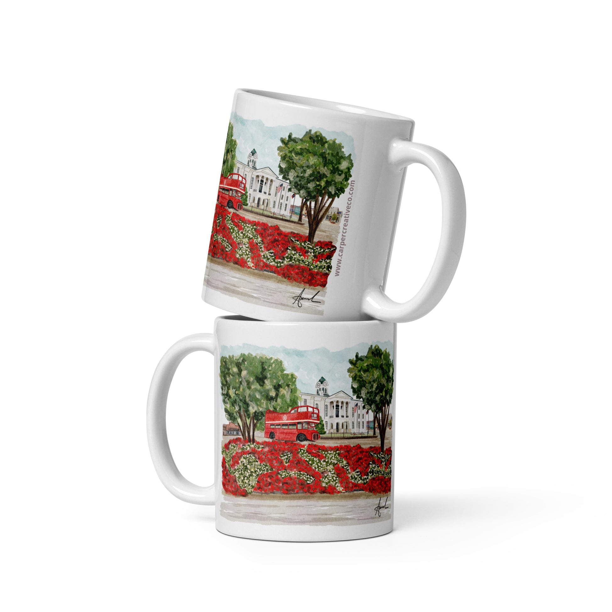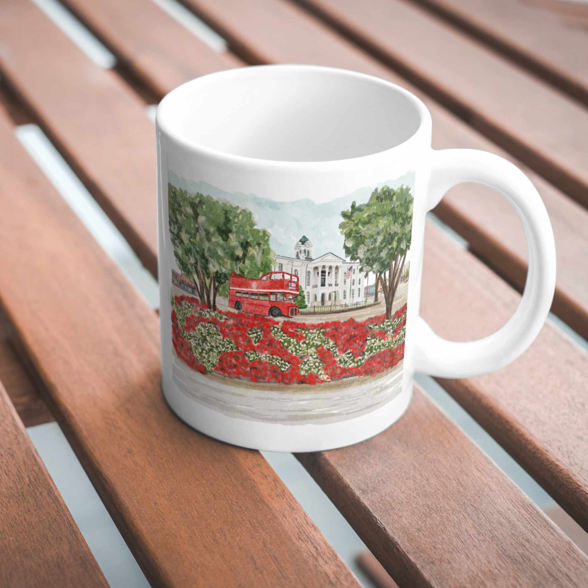 Courthouse Square Double Decker Bus Oxford MS Watercolor Mug