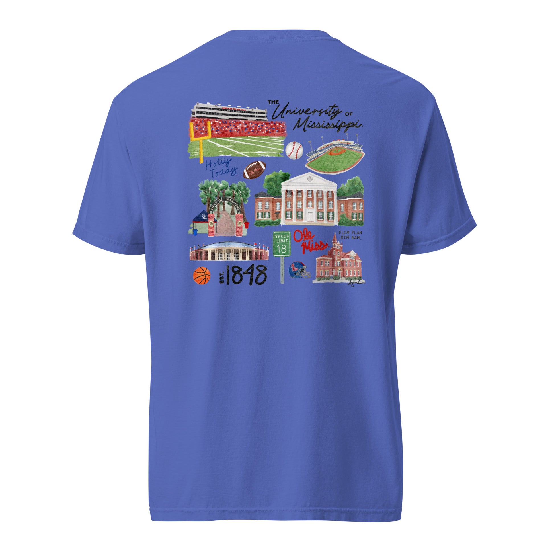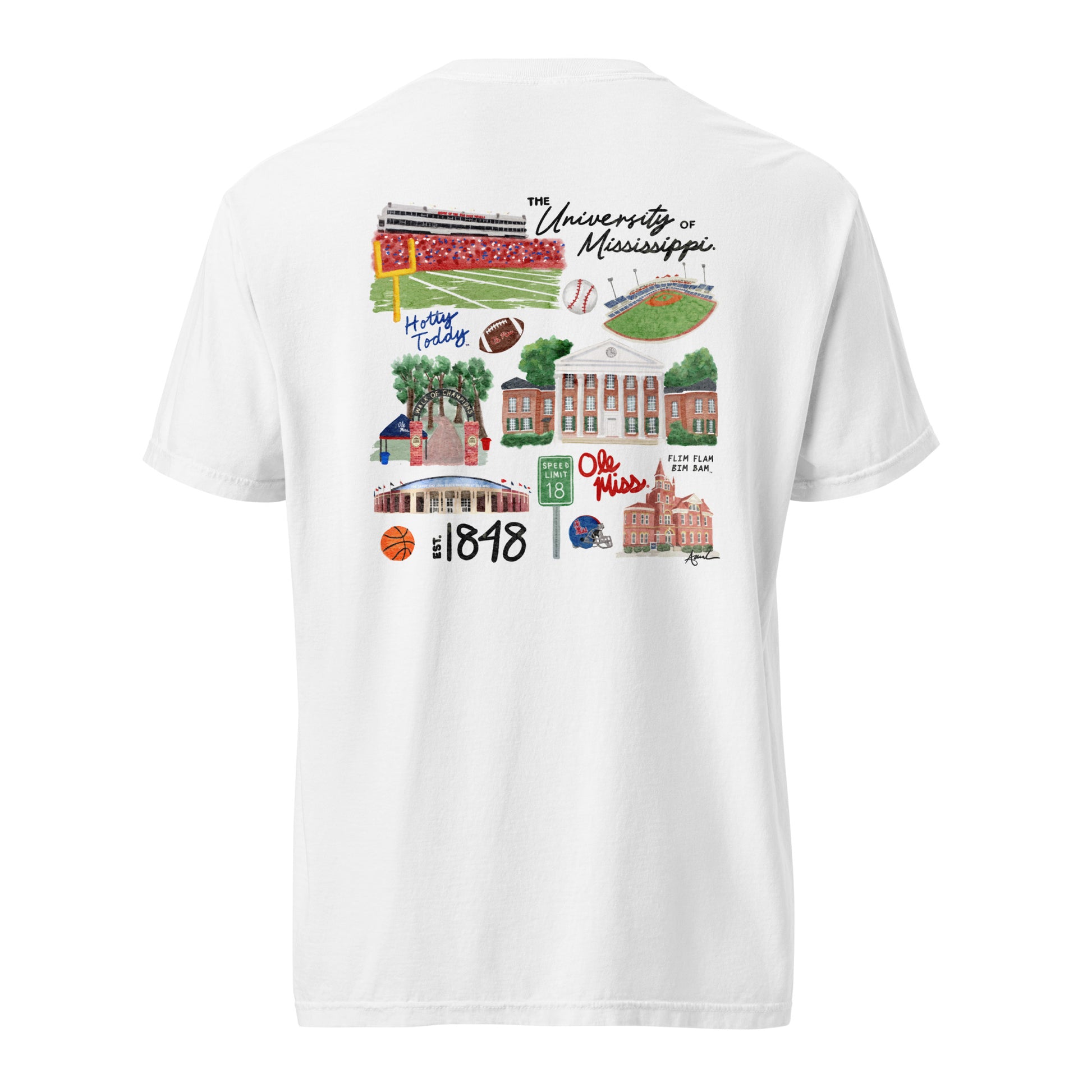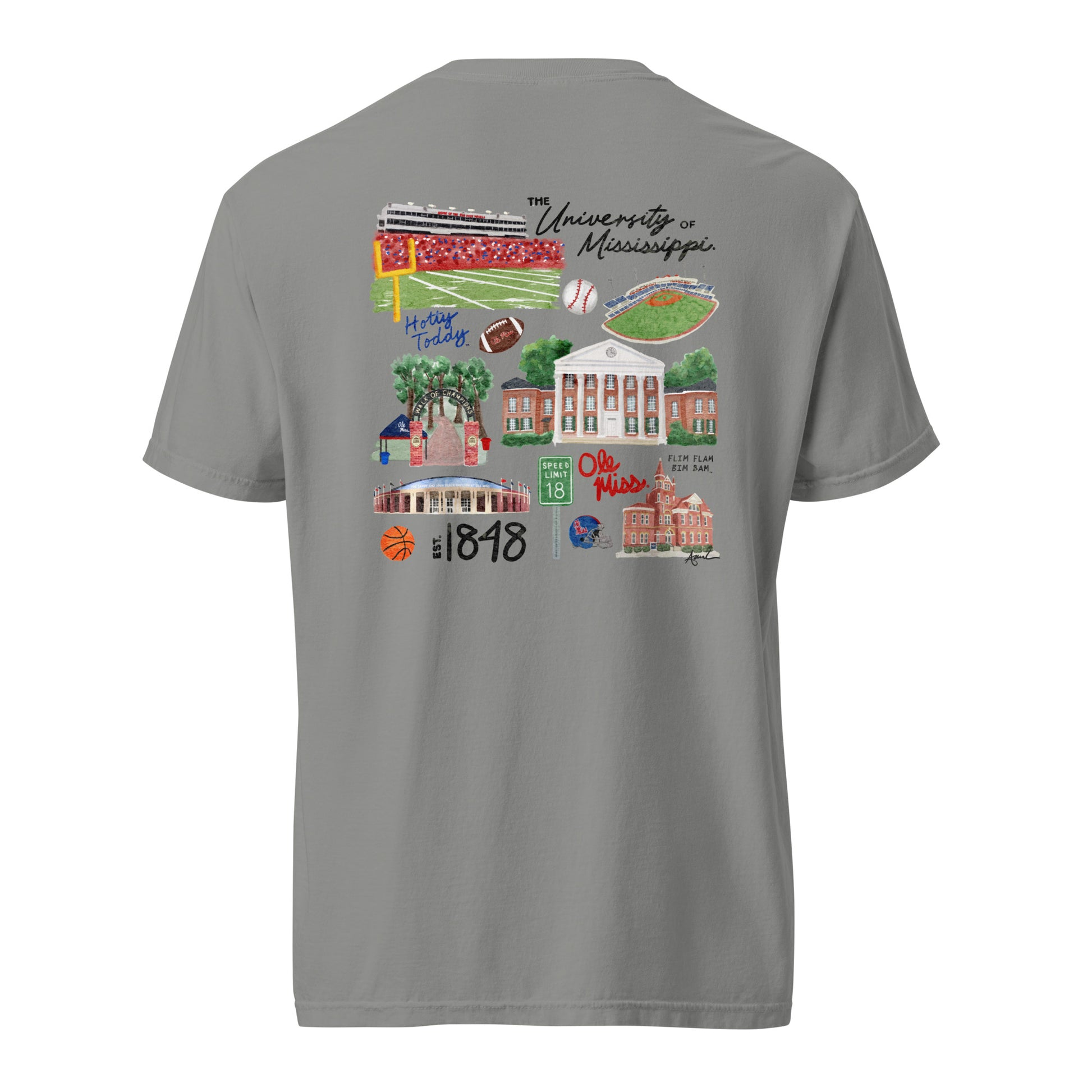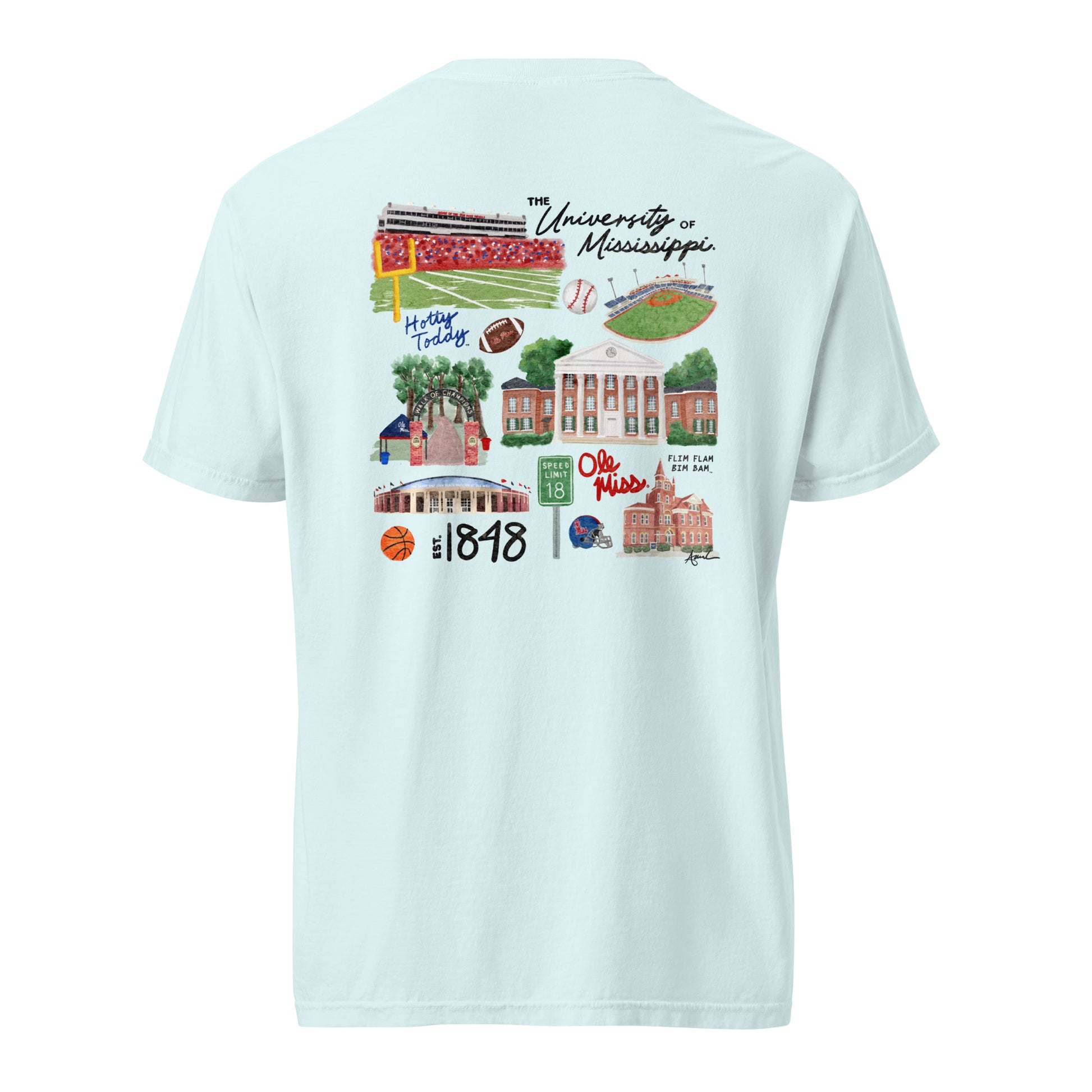 Ole Miss Watercolor Art Collage T-shirt - Comfort Colors