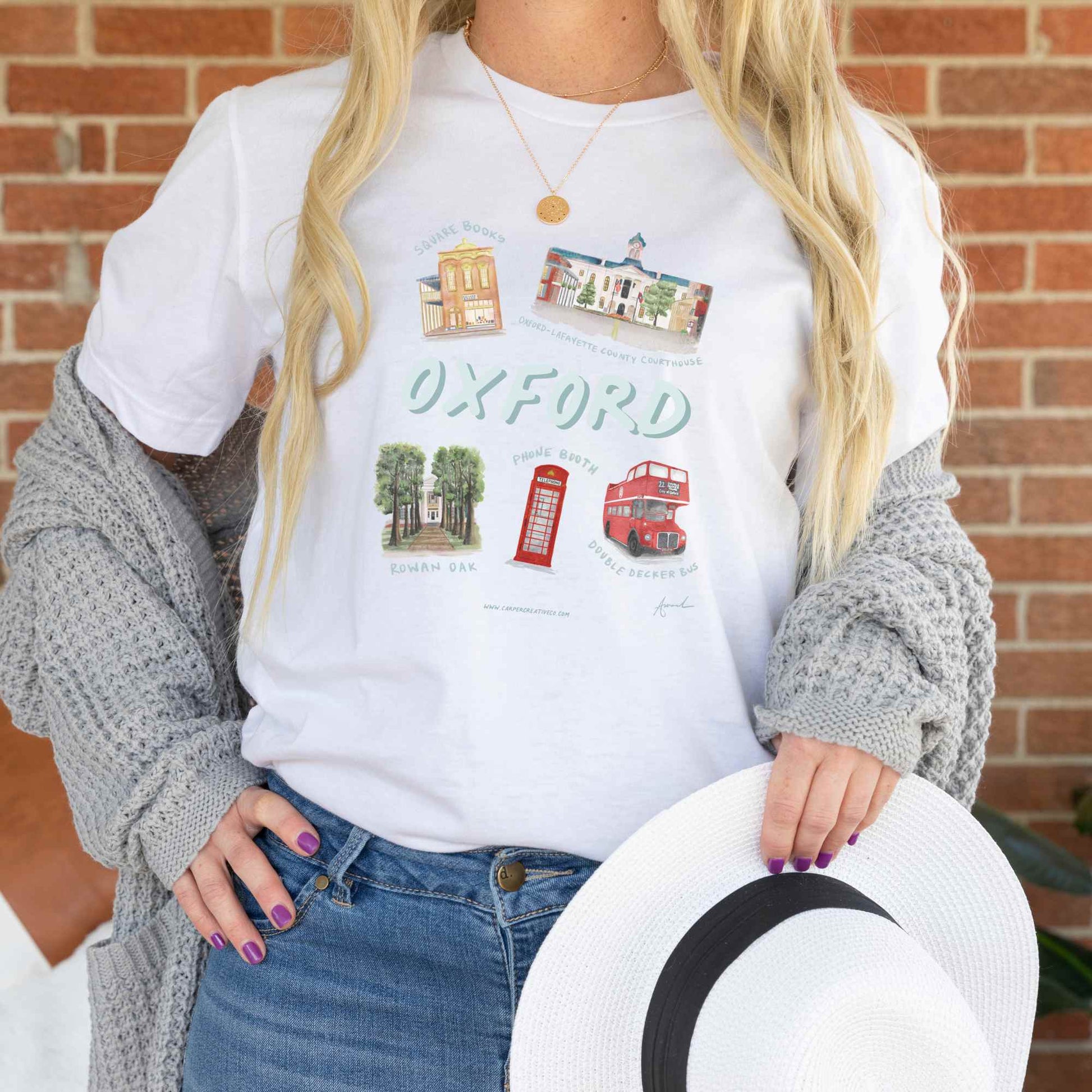 Oxford MS Landmarks Watercolor Art T-shirt - Bella + Canvas