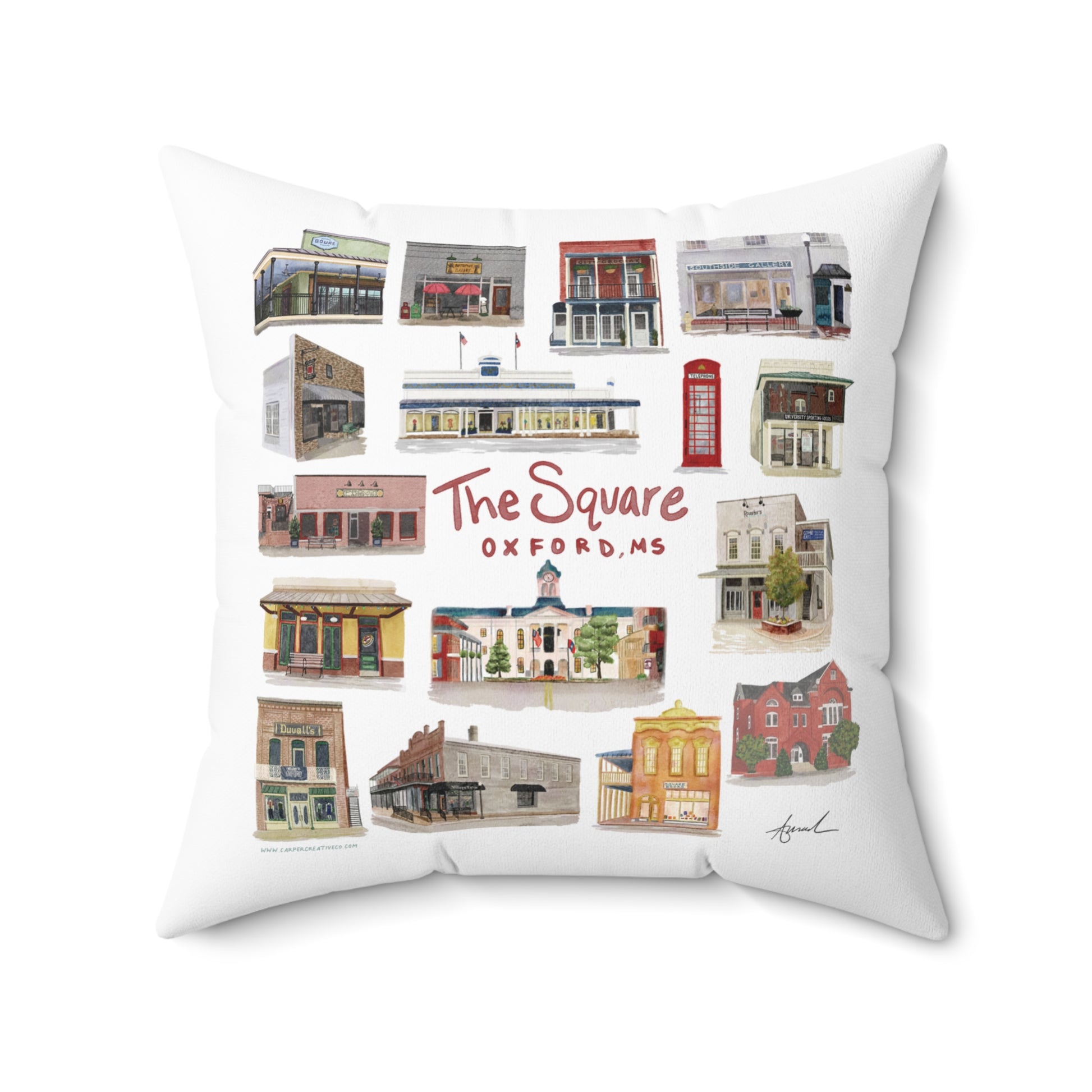 The Square Collage Oxford Mississippi Watercolor Art Pillow