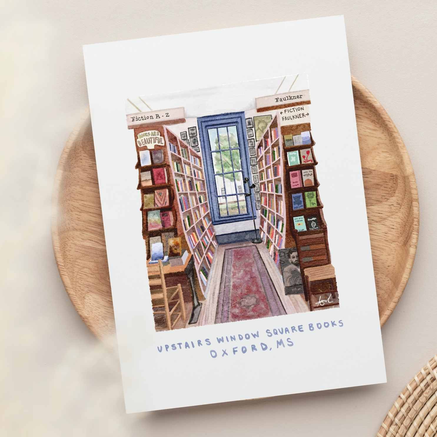 Upstairs Window Square Books Oxford MS Watercolor Art Print