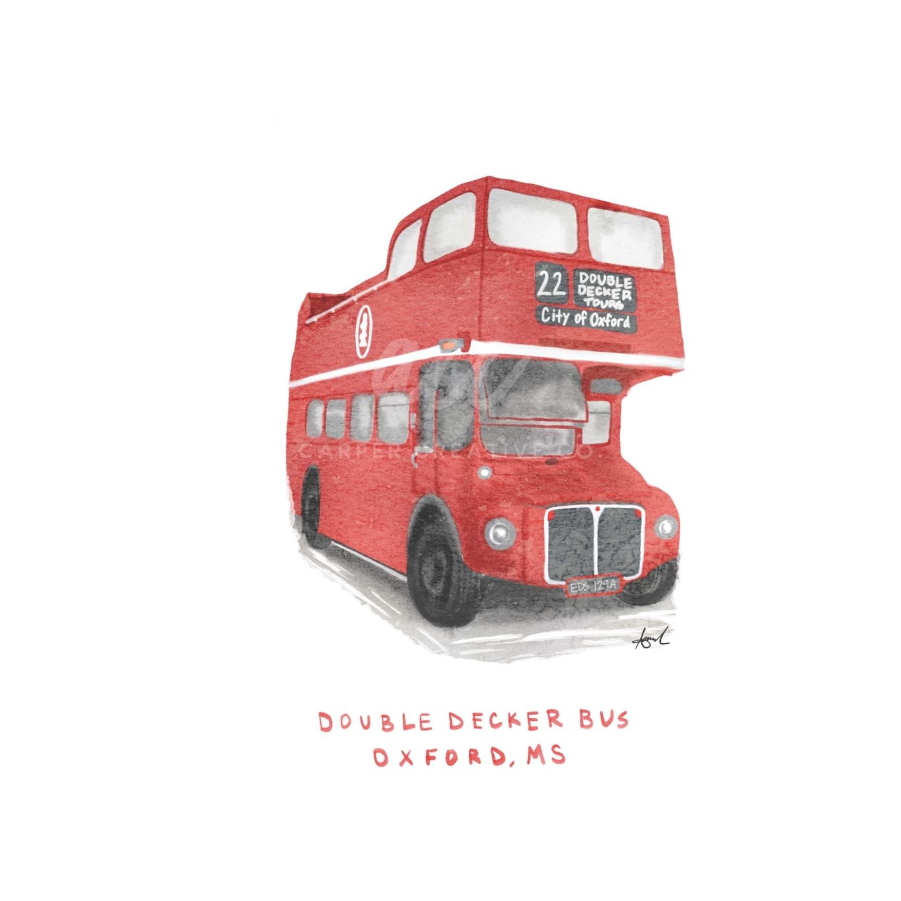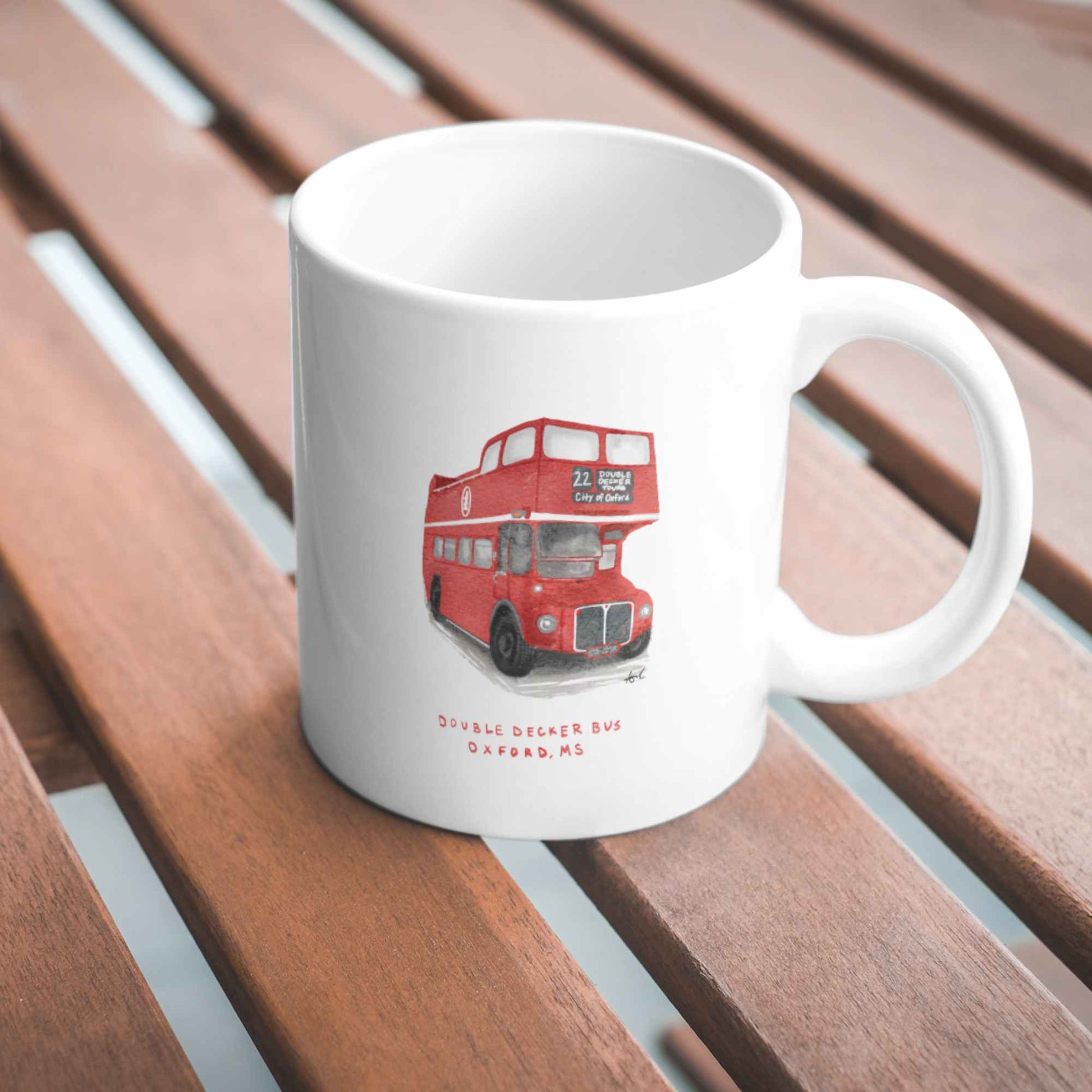 Double Decker Bus Oxford MS Watercolor Art Mug